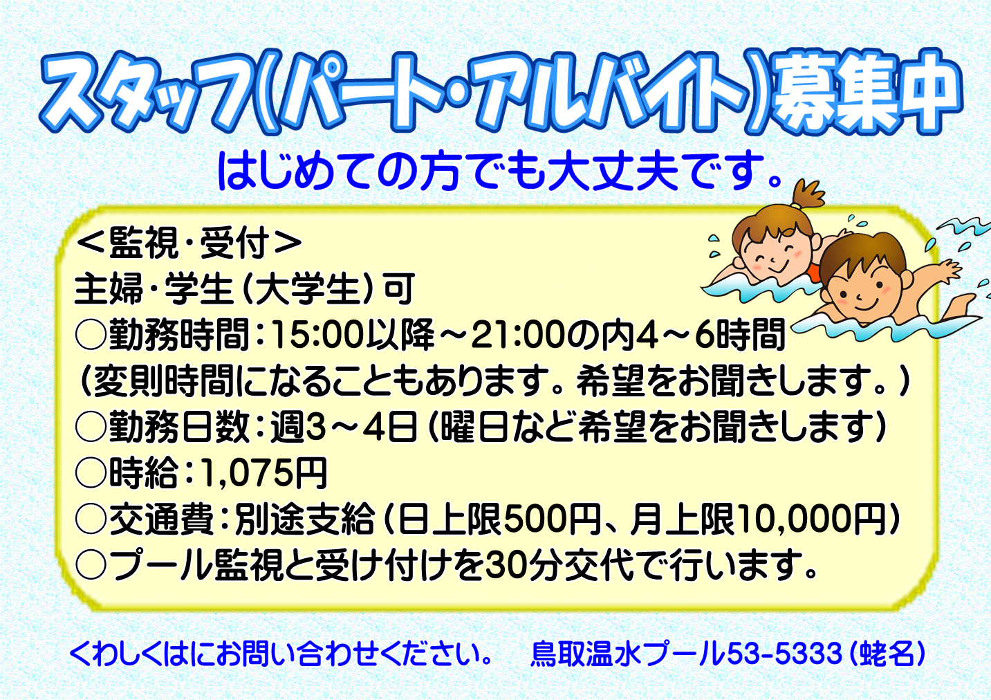 釧路市鳥取温水プールでは、競泳用プール、低学年用プール、幼児用プールの3つの水深の違うプールがあります。